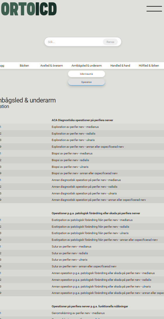 Sökbar databas med anpassade ICD-10-SE-listor för ortopedi.