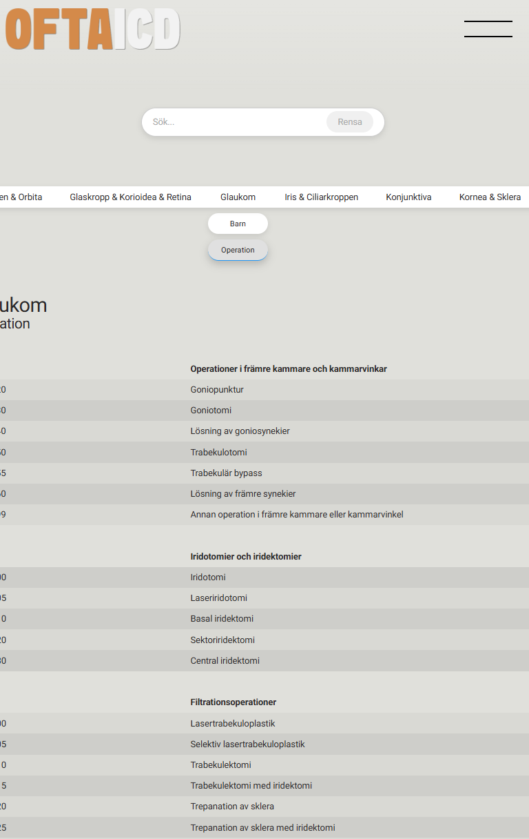 Sökbar databas med anpassade ICD-10-SE-listor för oftalmologi.
